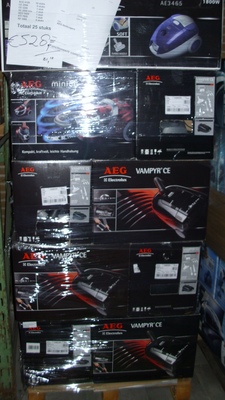 Now on stock some pallets with Vacuumcleaner. Nice brands like AEG, Siemens, Dirt Devil.... with bag or Bagless. Prices from € 11,00 till .....