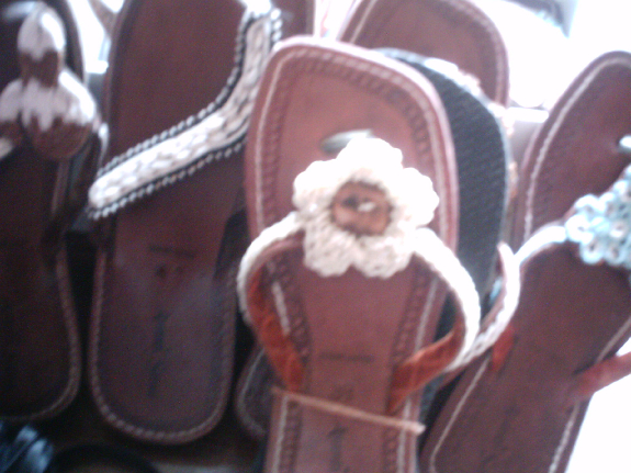 Foto 1:Echt leren zomerslippers met kraalmotief